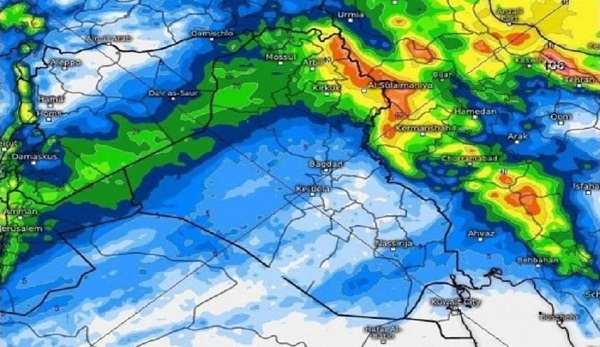 وأوضح العطية أن “التحديث الأمريكي أشار إلى أن يوم الاثنين، يشهد منذ الصباح توسع مساحة الأمطار لتشمل اغلب مدن الشمال (أربيل وسليمانية وكركوك واجزاء من الموصل وشمال ديالى)، ونتوقع غزارة في اماكن متعددة وعواصف رعدية أيضاً”.
