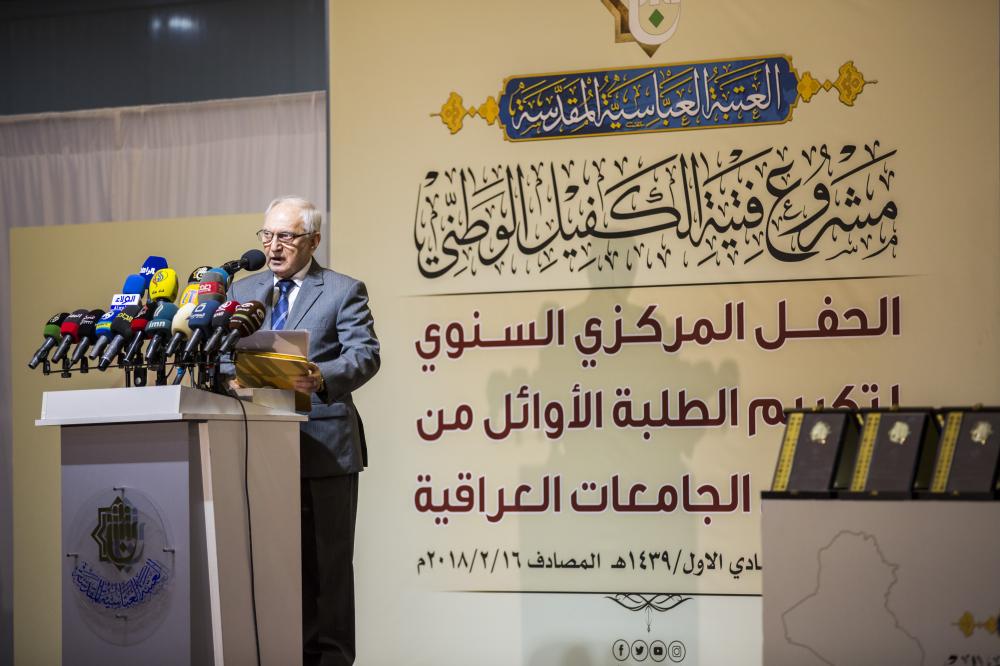 استُهِلّ الحفلُ بتلاوة آياتٍ من الذكر الحكيم والاستماع للنشيد الوطني العراقي ونشيد العتبة العبّاسية المقدّسة (لحن الإباء) وقراءة سورة الفاتحة على أرواح الشهداء السعداء وقوفاً، جاءت بعدها كلمةُ الأمانة العامّة للعتبة العبّاسية المقدّسة ألقاها متولّيها الشرعيّ سماحةُ السيد أحمد الصافي (دام عزّه) التي بيّن فيها بعد تقديم التهاني للطلبة وذويهم بهذا المنجز الكبير متمنّياً لهم التوفيق في حياتهم العمليّة أن يقدّموا الأفضل لهذا البلد الذي يستحقّ الكثير منهم، سائلاً الله سبحانه وتعالى أن يأخذ بأيديهم الى عُلا المجد دائماً وأن يرى في الطلبة كلّ تقدّم وازدهار، بوصفهم بناة لهذا البلد المعطاء.