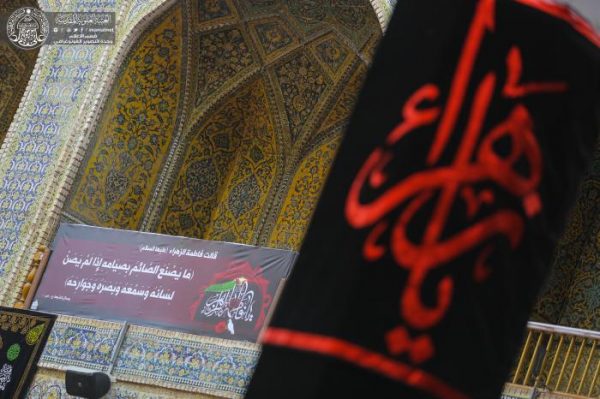 مضيفا ” قامت الهيئة بنشر معالم السواد والقطع الكبيرة الخاصة بهذه المناسبة الأليمة في داخل الصحن الشريف وخارجه وبقياسات مختلفةـ حيث تصل قياسات بعض القطع إلى 20 متراً طولا، و7 أمتار عرضاـ فضلا عن نشر السواد في معالم الحرم المطهر استعداداً لإحياء الذكرى الأليمة لشهادة البضعة الطاهرة فاطمة الزهراء (عليها السلام)”.