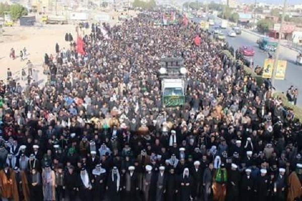 ويجري التشييع الرمزي لنعش الزهراء عليها السلام في مواكب عزاء من ساحة ثورة العشرين حتى الصحن العلوي الشريف.