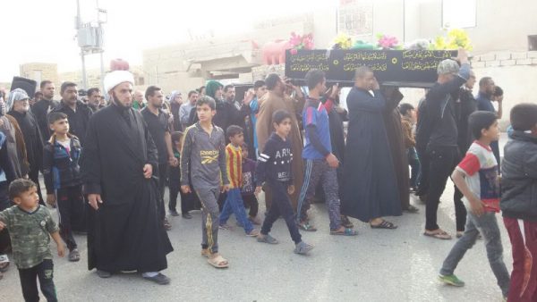بالصور .. برعاية قسم التبليغ في مكتب سماحة المرجع الكبير السيد محمد سعيد الحكيم .. تشييع رمزي لنعش الزهراء (عليها السلام) في قضاء المجر