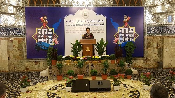 مضيفاً ”إن الغرض من هذا الاحتفال هو الاقتداء بالسيدة الطاهرة حتى تكون هناك معرفة باهمية الحجاب والعفة والمسير على نهجها القيم”.