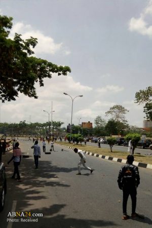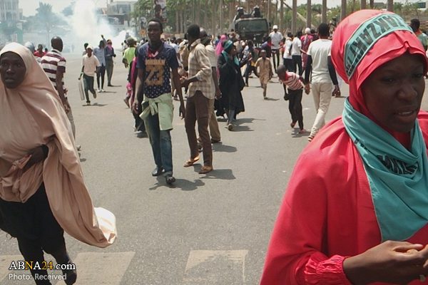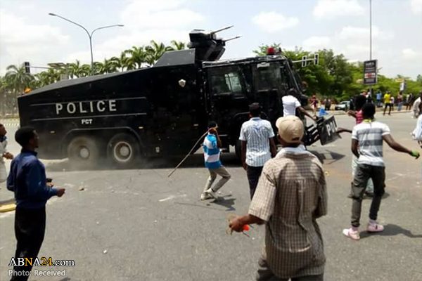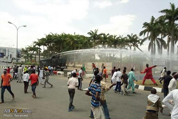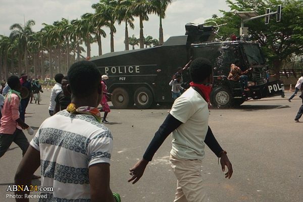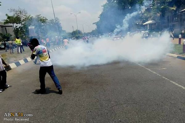 وقال متحدث باسم الحركة الاسلامية النيجيرية ابراهیم موسی ” ان الشرطة استخدمت لتفريق المتظاهرين غازات مسيلة للدموع ورشاشات المياه والرصاص الحي ضدهم، أسفر عن جرح 30 شخصا، كما اعتقلت هذه القوات نحو 200 شخص، وكان أحدهم جرحه خطير .