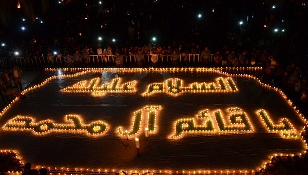 الكوفة (النجف الاشرف) – الحكمة : افتتحت امانة مسجد السهلة المعظم فعاليات مهرجان بقية الله الثقافي السنوي الحادي عشر بايقاد 1184شمعة بعدد سني عمر الامام المهدي (عج) حيث وضعت الشموع على مساحة من الارض تقدر ب 150 متر مربع حيث كتب عليها السلام عليك يا قائم ال محمد وقد بدأ حفل الافتتاح بتلاوة من القران الكريم ثم قصائد شعريه مهدوية ثم ايقاد الشموع وقد حضر حفل الافتتاح جموع غفيرة من الزائرين الذين ملؤا ارجاء صحن السيدة نرجس (ع) والساحات الخارجية والداخلية من المسجد المعظم.