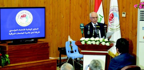 وزير التعليم عبد الرزاق العيسى، اوضح خلال المؤتمر الخاص بإطلاق معايير الاعتماد المؤسسي لمؤسسات التعليم العالي في العراق الذي عقد في جامعة النهرين وحضرته “الصباح” ان الوزارة دأبت على إعداد وإطلاق معايير الاعتماد المؤسسي الوطنية من خلال تشكيل لجنة وزارية مختصة في مجال الجودة.