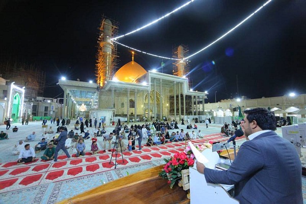 في ليلة النصف من شهر رمضان .. الصحن العسكري المقدس في سامراء يصدح بحب كريم أهل البيت (عليه السلام)