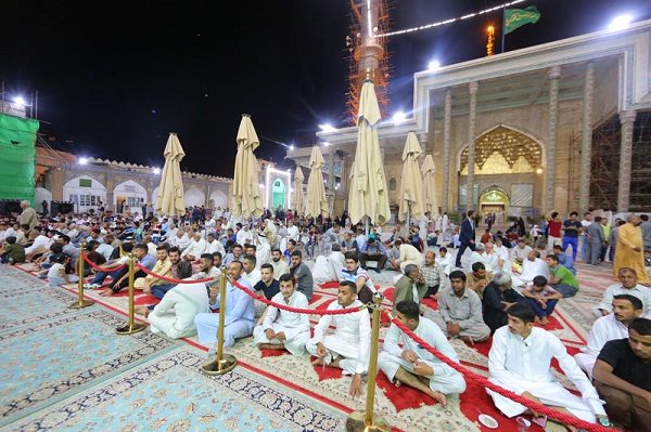 أهالي مدينة الدجيل يقيمون حفلا بهيجا في الصحن العسكري المقدس بمناسبة ذكرى ولادة الإمام الحسن المجتبى (عليه السلام)
