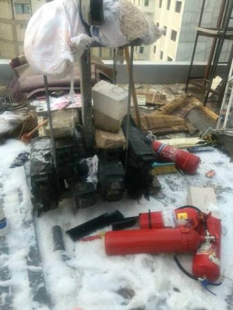 بالصور.. إخماد حريق بفندق بين الحرمين الشريفين بكربلاء