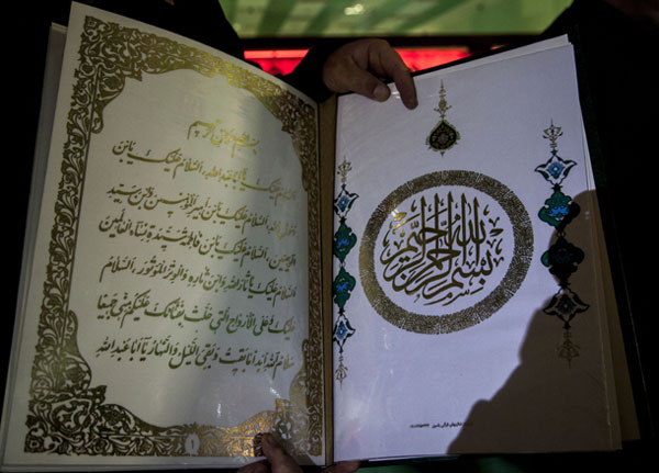 تسلم متحف العتبة الحسينية المقدسة اليوم السبت نسخة من زيارة الامام الحسين “عليه السلام” مخطوطة بماء الذهب اهديت من قبل احد خدام الامام الرضا “عليه السلام” من جمهورية ايران الاسلامية.