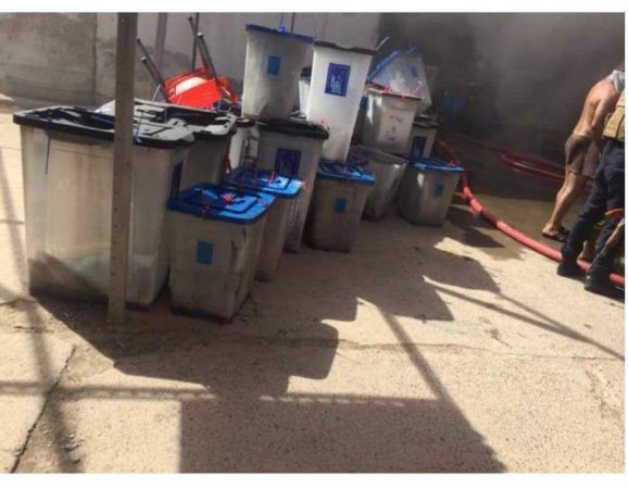 من جانبه قال مصدر مطلع، ان “الحريق اسفر عن احتراق 3 مخازن تحوي حاسبات واجهزة الكترونية ووثائق انتخابات منذ 2005″، مشيرا الى ان “فرق الدفاع المدني تحاول حاليا استخراج صناديق الاقتراع”.