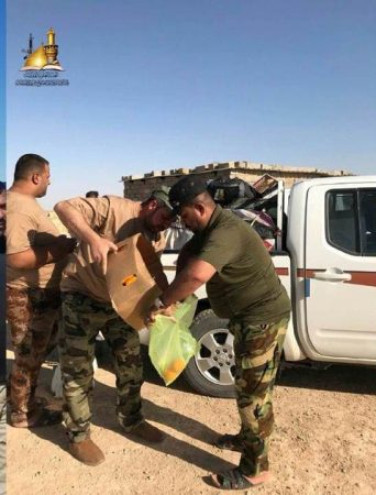مبلغو الحوزة يشرفون على قافلة الدعم اللوجستي لأهالي قضاء (المْدَينة) بالبصرة التي وزعت المواد الغذائية على المقاتلين المرابطين على الحدود السورية؛ ونقلت سلام ودعاء المرجعية وتوجيهاتها السديدة