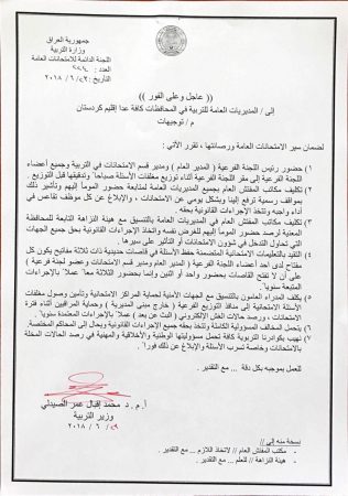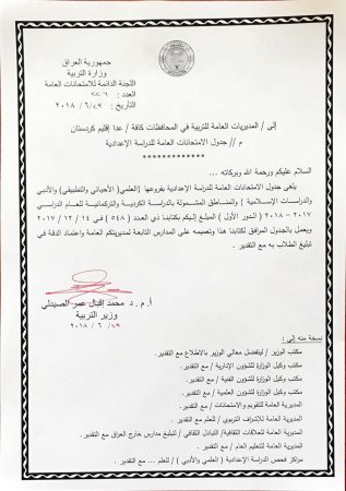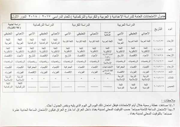 تأجيل امتحانات السادس الاعدادي بفرعيه التطبيقي والاحيائي الى 6/27.