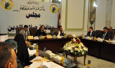 تكريت – الحكمة : كشف مجلس محافظة صلاح الدين، اليوم الثلاثاء، عن بدء نزوح عدد من العوائل في المحافظة بسبب داعش الإرهابي، موجها انتقاده للقوات الأمنية. وحذر رئيس المجلس احمد الكريم، خلال الجلسة التي انعقدت اليوم، من “كارثة ستحل بمحافظة صلاح الدين اذا لم تتم معالجة تواجد داعش في المحافظة”، مؤكدا ان “هناك عائلات بدأت تنزح من مناطقها بسبب تواجد داعش”. وأضاف، أن محافظة صلاح الدين مهددة من قبل داعش والقوات الامنية منشغلة بتهريب النفط وأخذ الاتاوات من المواطنين في السيطرات، وداعش يختار الاماكن والأوقات المناسبة لتنفيذ هجماته وقد ابلغنا الحكومة المركزية بكل تلك الأمور”. وعقد مجلس محافظة صلاح الدين، جلسته الاعتيادية السادسة للعام الحالي برئاسة أحمد عبد الجبار الكريم. وخصصت الجلسة، لمناقشة الأوضاع الأمنية والخدمية في عموم مدن المحافظة، كما تضمن جدول أعمالها استضافة رئيس وأعضاء المجلس المحلي لقضاءي تكريت والعلم ومدير دائرة المجاري.