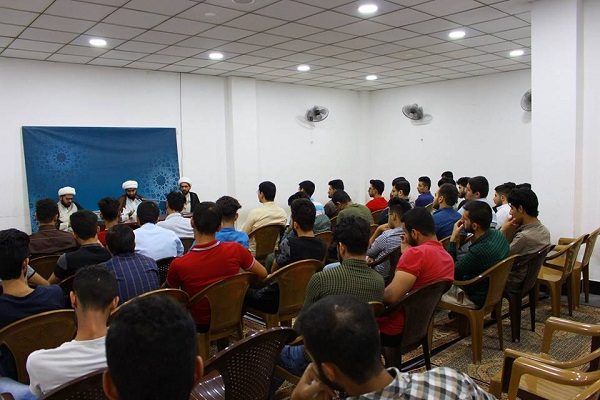 النجف الأشرف – الحكمة : أقام قسم الشباب والجامعات التابع لمكتب سماحة المرجع الديني الكبير آية الله العظمى السيد محمد سعيد الحكيم ( مد ظله ) محاضرة لطلبة الجامعات والمعاهد – الوجبة الأولى، في مدرسة آية الله العظمى السيد محسن الحكيم (قدس سره) في النجف الأشرف، حيث ألقى على مسامعهم سماحة الشيخ أحمد الهندي محاضرة بعنوان (عوامل نفور الشباب من الدين).