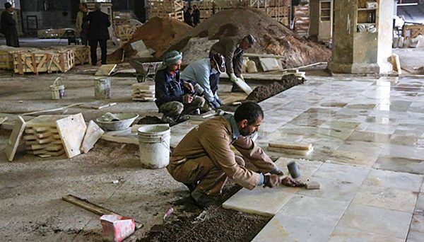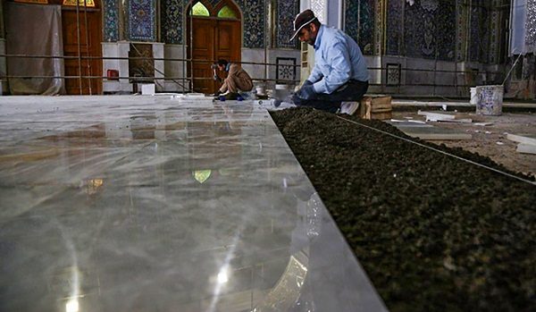 وتضيف “تمت المباشرة بإكساء أرضية المسقف الشرقي بالمرمر من نوع (أونكس) الذي يتميز بألوان متناسقة مع الأطار العام لإنهاءات المشروع وبمساحة تقدر بـ(1320)م2″، لافتة الى ان ” المشروع يشارف على الانتهاء وسيتم إكمال الجانب الشرقي كخطوة أولى يليه الجانب الغربي الذي تبلغ مساحته (950) م2″