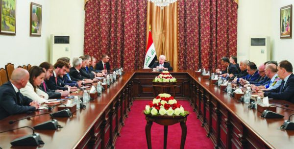وأفاد بيان لرئاسة الجمهورية بأن “رئيس الجمهورية فؤاد معصوم استقبل سفراء الدول الأوروبية لدى العراق وبحث معهم سبل تعزيز العلاقات بين العراق ودول الاتحاد الأوروبي في كافة المجالات، كما استعرض اللقاء مواقف العراق تجاه المستجدات الإقليمية والدولية”، وأكد معصوم “اهتمام العراق بالاستماع إلى أي وجهات نظر أو مقترحات تعزز العلاقات الثنائية وتدعم تطوير الاستقرار والازدهار على المستويين الإقليمي والدولي”.