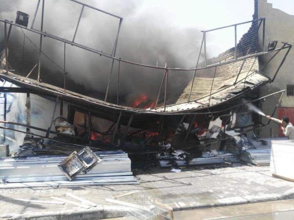 النجف الأشرف: فرق الدفاع المدني تخمد حريقا في أحد المخازن التجارية بحي العدالة