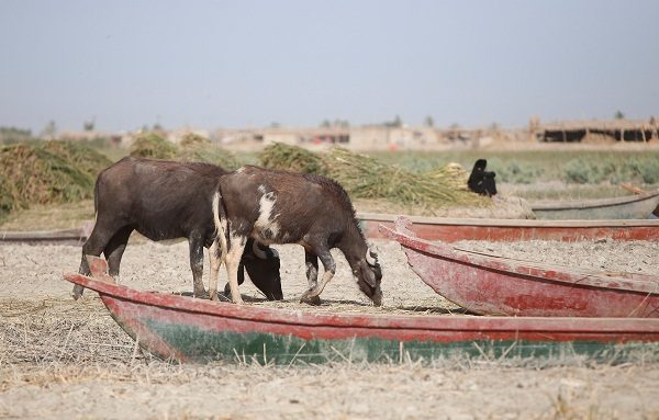 وقال أحمد صباح الذي يملك قطيعا من 500 رأس من الجاموس “المياه شحت وتوقفت الزوارق عن المجيء للمنطقة وبدأت الماشية تضعف وتفقد وزنها ثم تنفق ولم تجد معها الأدوية نفعا”.