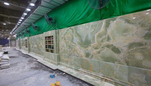 واضاف “سيتم تغليف الجدار واكساء الارضية بأفخر انواع المرمر من نوع (اونكس) وهو شديد الصلابة واللّمعان، ومشابه للمرمر الأخضر المستخدم في جدران الحرم الشريف”.