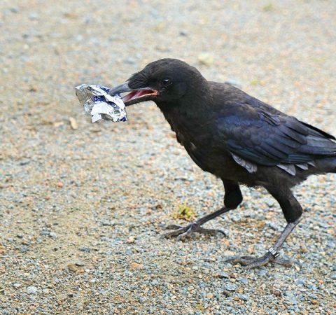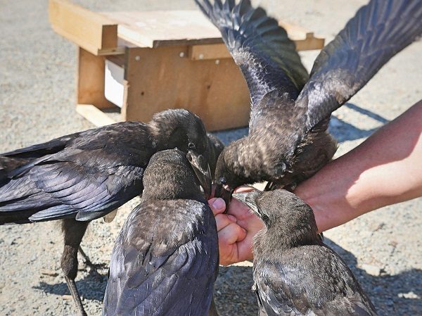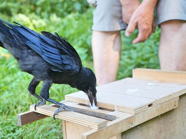 وستحصل هذه الغربان على قطعة من الطعام من وعاء صغير في كل مرة تضع فيها قمامة في صندوق محدد لذلك.
