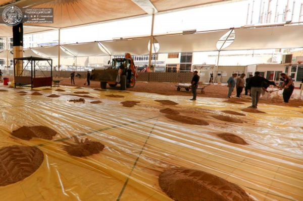 وتابع ” تم تغطية المساحة المخصصة لإقامة الشعائر الحسينية ( رفع المشاعل) والتي بلغت ما يقارب 3 آلاف متر مربع ، بكميات كبيرة من النايلون والرمل الناعم وذلك لحماية المعزين والمشاركين مع الحفاظ على أرضية الصحن الشريف من التلف والأضرار المصاحبة “.