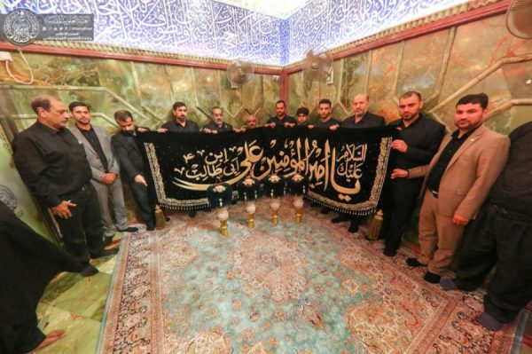 بادر نخبة من المحبين لأهل البيت الأطهار قادمين من دولة باكستان بتقديم تحف فنية نادرة مزخرفة على شكل ( رمانات ) لتزيّين الشباك الطاهر لمرقد أمير المؤمنين ( عليه السلام)، مع لافتة سوداء كتب عليها ( السلام عليك يا أمير المؤمنين ) بعد إحاطة جوانبها وتوشيحها بالقماش الأسود بمناسبة قدوم شهر محرم الحرام.