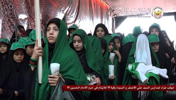 كربلاء المقدسة – الحكمة : نظمت مدارس السيد علي الاصغر والسيدة رقية عليهما السلام التابعتين لممثلية المرجعية الدينية العليا في كربلاء المقدسة مسيرة عزاء لاحياء ذكرى استشهاد الامام الحسين عليه السلام. وانطلقت المسيرة التي شارك فيها قرابة 1000 يتيم ويتيمة من شارع قبلة ابي الفضل العباس عليه السلام مرورا بمنطقة ما بين الحرمين الشريفين وصولا الى حرم سيد الشهداء عليه السلام. شاهد الفيديو :