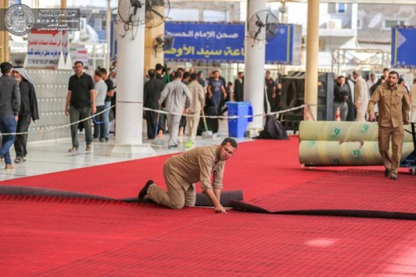* استنفار خدمي لغسل الشوارع والطرق المؤدية الى الصحن العلوي المقدس من قبل قسم الشوؤن الخدمية وشعبة الآليات الخدمية والأقسام الساندة بعد إنتهاء مراسيم الزيارة للأيام العشرة الأولى من شهر محرم الحرام.
