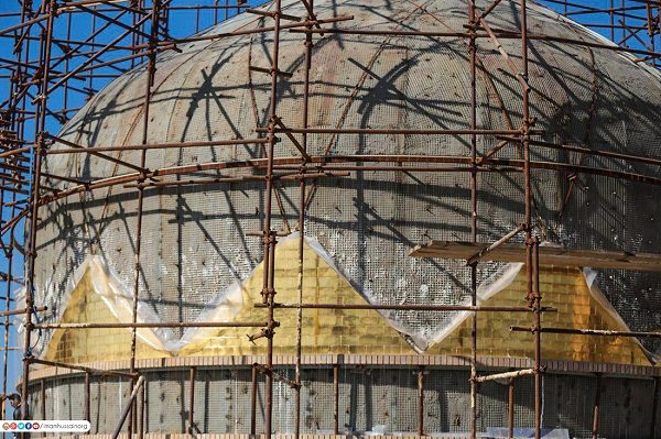 صور عن مشروع تذهيب قبة مسجد السهلة المعظم شمالي مدينة الكوفة في محافظة النجف الأشرف