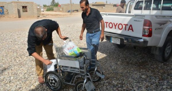 هيئة الحشد مكتب واسط تسلم عربات (كرسي) كهربائية لعدد من المصابين بشلل الأطراف السفلى