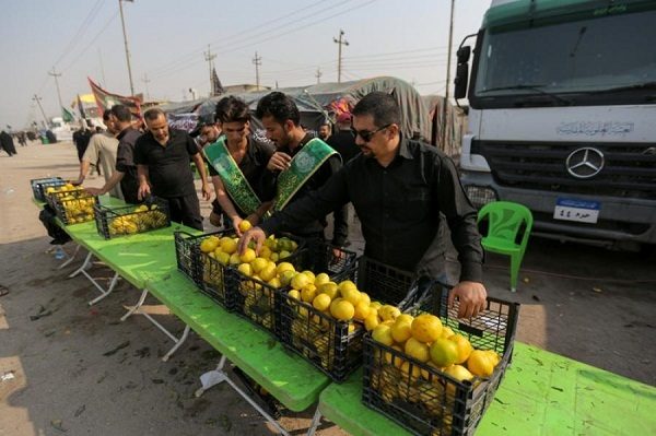 وأضاف الخرسان ” تعمل كوادرنا على توزيع المواد العينية للزائرين المتمثلة بالمياه النقية الصالحة للشرب والفواكه الطازجة والحليب والعصائر ، بكميات تتجاوز الـ ( 100) طن من تلك المواد تم شحنها بالتعاون مع قسم الآليات في العتبة المقدسة وبوجود منتسبي الأقسام الساندة لنا “.