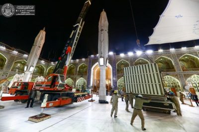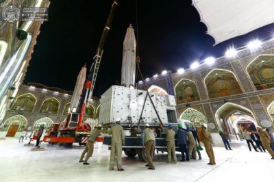 الكوادر الهندسية والفنية بالعتبة العلوية تنجز مرحلة رفع منظومة التبريد في المنطقة المحيطة بقبة مرقد أمير المؤمنين ( عليه السلام)