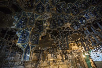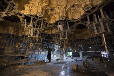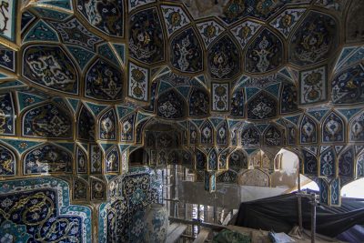 العتبة العباسية :أعمالُ الزخرفة والنقوش لبوّابة قبلة أبي الفضل العبّاس (ع) من الداخل تصل الى مراحل متقدّمة