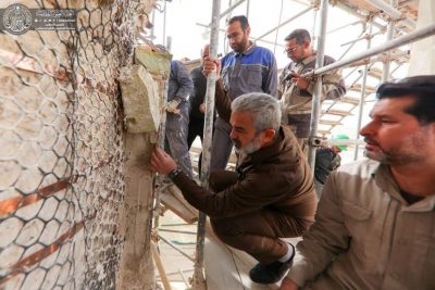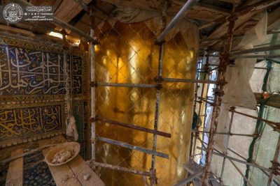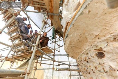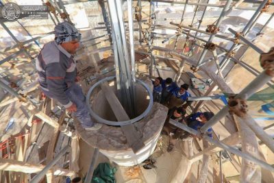 وأكد الكرماني ” مراحل العمل بدأت في المنارة الجنوبية والتي تضمنت قلع الطابوقة النحاسية المطلية بالذهب وترميمها وإعادتها إلى مكانها الأصلي دون التلاعب بالقياسات والمواصفات الثابتة فيها حفاظاً على القيمة المعنوية والأثرية”.