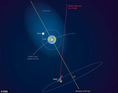 وأجريت الملاحظات بواسطة أداة “SWAN” الموجودة على المركبة الفضائية “سوهو”، والتي تتبعت علامات الهيدروجين في جميع أنحاء “geocorona”، ما كشف امتدادها ضعف المسافة إلى القمر.