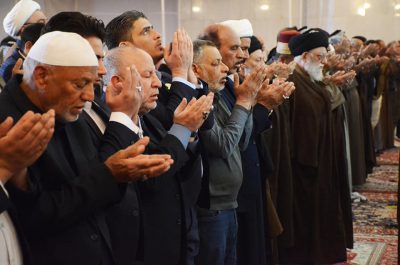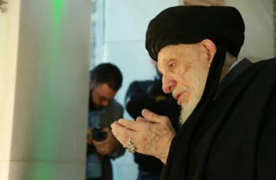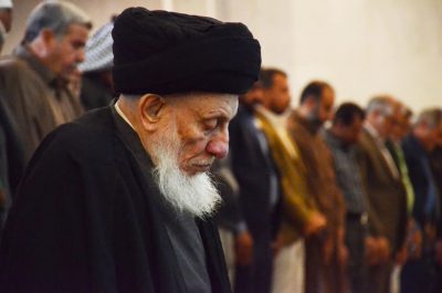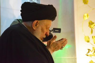 بالصور .. سماحة المرجع الحكيم يؤم المصلين في رحاب مقام الإمام المهدي المنتظر(عجل الله تعالى فرجه) بمسجد السهلة المعظم