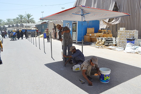 باشرت الكوادر الفنية في قسم الصيانة التابع للعتبة الحسينية المقدسة بنصب مجموعة من القواطع لتنظيم حركة مرور الزائرين.