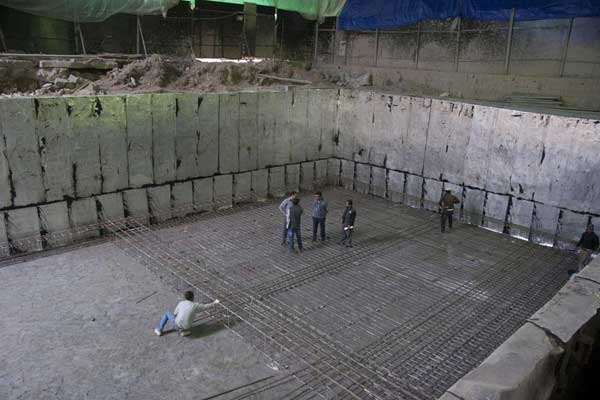 وأضاف: “وصلنا في المقطع الأوّل الى مرحلة صبّ السقف، والذي تمّت المباشرة به بعد أن انتُهِيَ من بناء الجدار بمادّة البلوك الإسمنتيّ المجوّف، والانتهاء من أعماله الملحقة به من طلسه (لبخه) وتغطيته بطبقات عديدة من المواد العازلة للرطوبة (لباد وقير) وطُلي هذا الجدار بتلك المواد وفقاً لقياسات خاصّة وبطريقةٍ هندسيةٍ مدروسة، وبارتفاعٍ صافٍ يبلغ (4,20م) باستثناء طبقات الأرضية، حيث تمّت معالجتُها هي الأخرى بطبقاتٍ عازلة بعد أن حُدِلَت، وزُوّدت بفلاتر خاصّة لسحب المياه الجوفية وطبقة من حصى (الجلمود) و(السبيس) بنفس القياسات الخاصة، ليتمّ صبّها بطبقهٍ خرسانية يبلغ سُمْكُها (10سم) وتسمّى (صبّة البلاندك) لتعالج بعد ذلك مرّةً أخرى بمواد عازلة ومقاومة للرطوبة، ثمّ أُضيفت اليها طبقة خرسانية أخرى (صبّة كونكريتية) لتُختَتَم بطبقة كونكريتية يبلغ سُمْكُها (70سم)، وجميع هذه الأعمال تمّ الانتهاء منها”.
