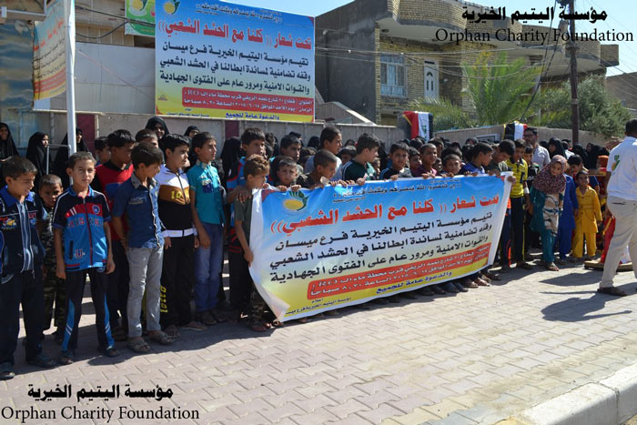 وقفة تضامنية مع الحشد الشعبي المبارك لمؤسسة اليتيم الخيرية في ميسان