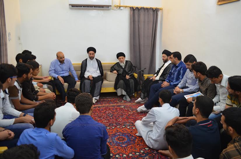 سماحة المرجع الكبير السيد الحكيم دام ظله الوراف خلال استقباله مجموعة من طلبة الجامعات