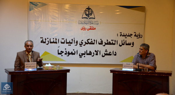 النجف الأشرف – الحكمة (خاص): أقيمت في مؤسسة الحكمة للثقافة الإسلامية في النجف الأشرف، مساء الأربعاء، ندوة ثقافية في ملتقى رؤى الفكري بعنوان (رؤية جديدة: وسائل التطرف الفكري وآليات المنازلة – داعش الإرهابي أنموذجًا) للدكتور حسين شير علي الأستاذ في كلية الفقه جامعة الكوفة والمتخصص بعلوم الحديث الشريف.